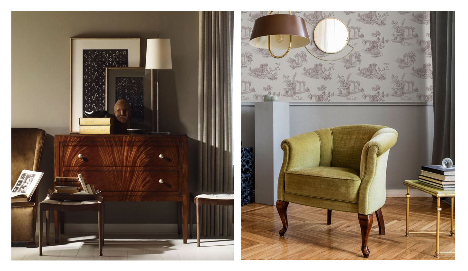 Кресла, пуфы, диваны честерфилд, различные столики, банкетки, стеллажи, библиотеки, буфеты — всё это аристократичный английский стиль. Ещё одним знаковым элементом интерьера в английском стиле является зеркало. А вернее туалетный столик с зеркалом или трельяж.