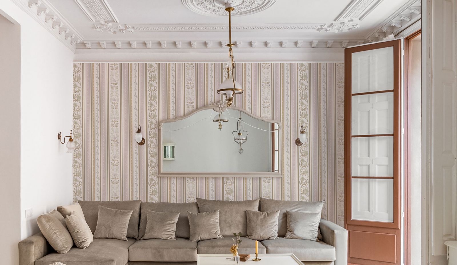 Между стеной и потолком, зачастую монтируют резные плинтуса и молдинги – так оформление станет более благородным и дорогим.