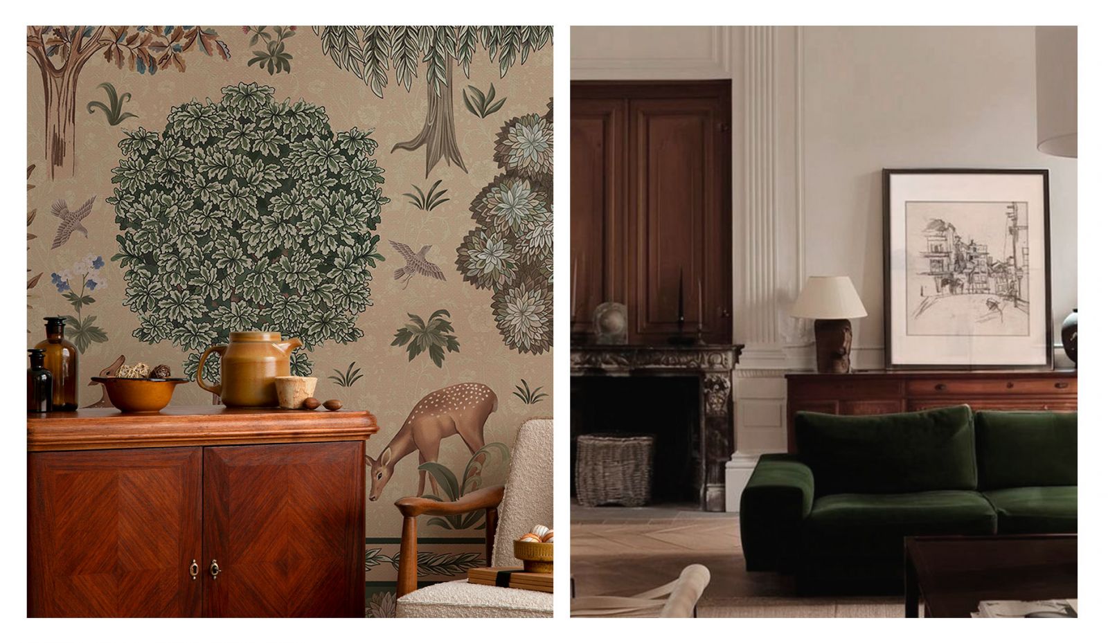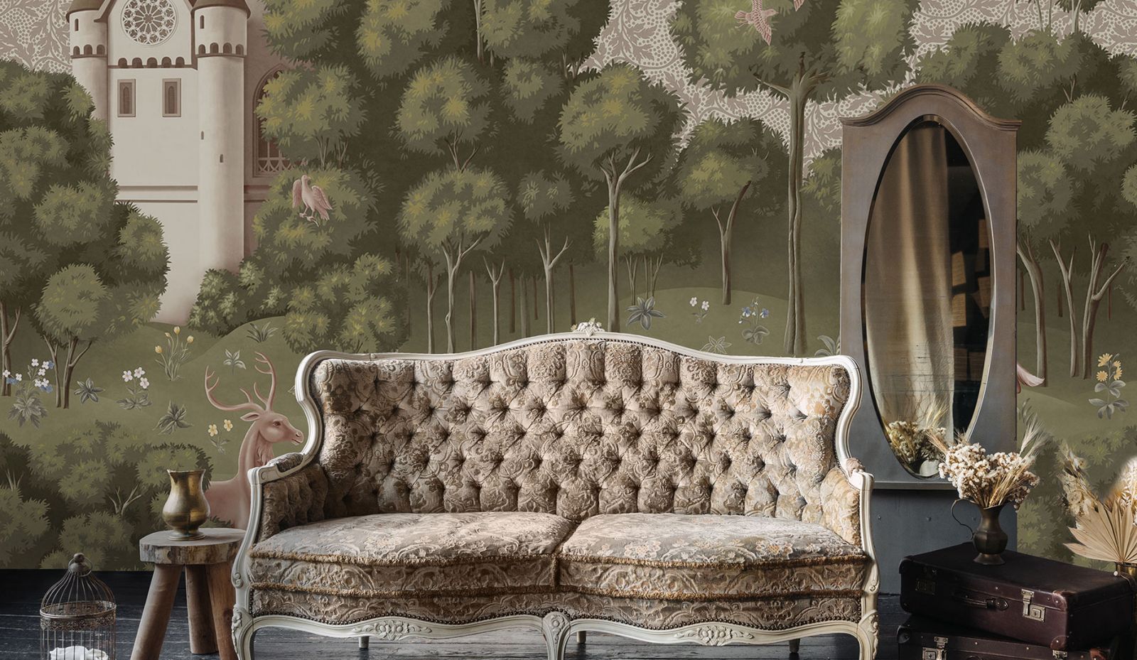 Стены – первое, на что мы обращаем внимание, зайдя в помещение. В винтажном интерьере они могут быть как нейтральными (матовая покраска в светлых пастельных тонах), так и стилизованные. В случае, если вы решили оформить стены стильными обоями в стиле винтаж, стоит обратить внимание на дизайнерские коллекции компании «ОРТОГРАФ»: мифические создания, как на старинных средневековых гобеленах, ремесленные мотивы, отголоски славянских былин и преданий, изящные растительные узоры и дамаски в сочетании с лаконичной геометрией.  Эти винтажные коллекции придадут вашим стенам утончённый стиль, особый шарм и элегантность. Ещё одна особенность этих дизайнерских обоев в том, что их можно выполнить единым полотном, совершенно без стыков. Вам не придётся часами подгонять полотна по узору и делать аккуратный шов.